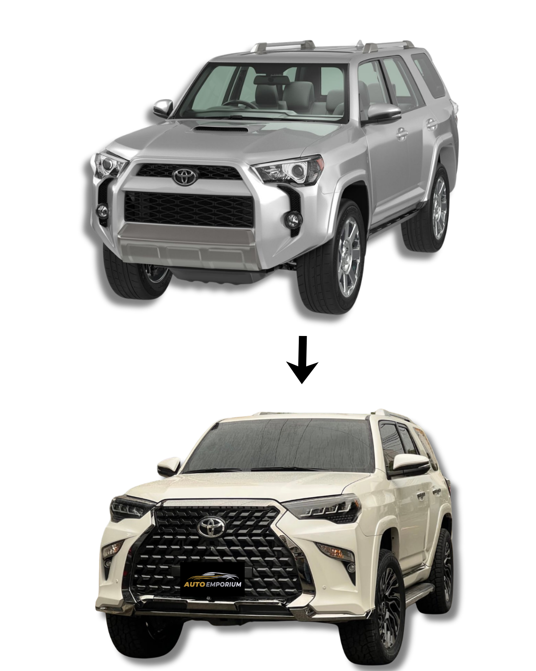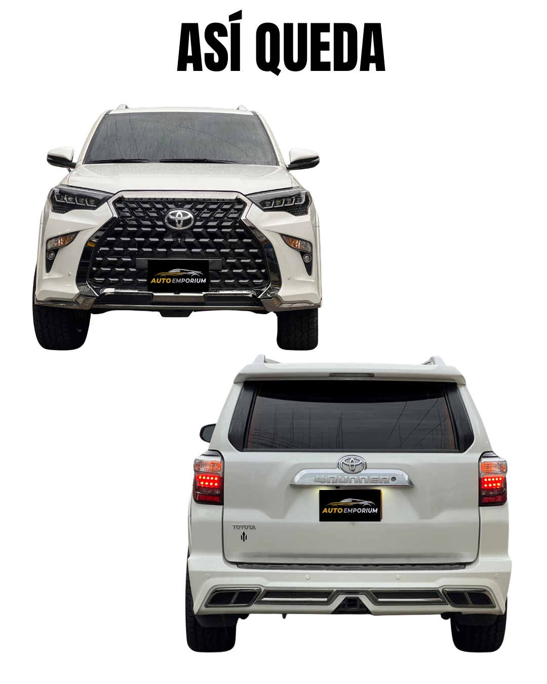 La Actualización 4Runner modelos 2010-2022 a tipo Lexus renueva tu Toyota 4Runner con un diseño más elegante y moderno. Transforma el frente de tu camioneta con un estilo premium tipo lexus que eleva su presencia y la hace lucir más exclusiva.