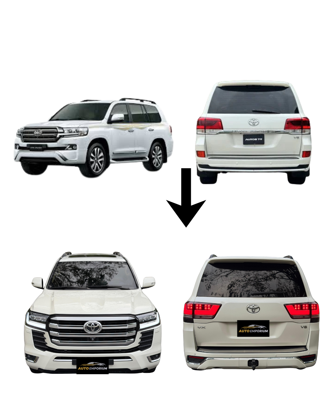 La Actualización LC200 a LC300 menos completa renueva tu Toyota Land Cruiser 200 al estilo moderno de la Toyota Land Cruiser 300. Transforma su apariencia con una conversión estética que le da un look más actual, imponente y sofisticado.