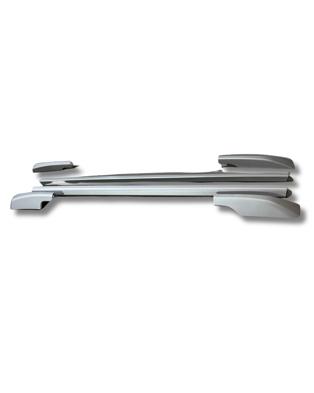 Barras de techo color silver para Toyota Land Cruiser LC300. Diseño resistente y elegante que permite transportar carga adicional con seguridad, manteniendo la estética premium del vehículo.