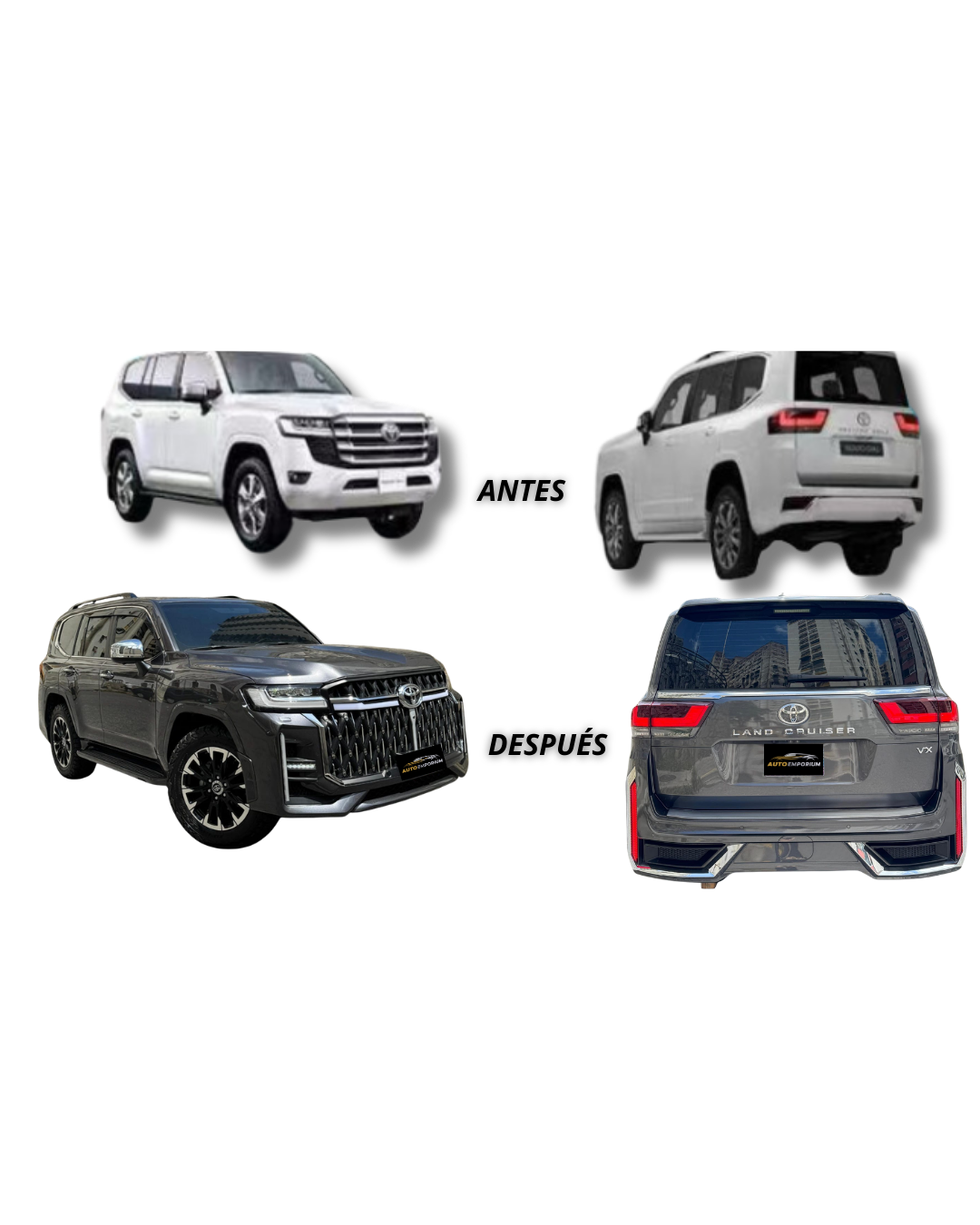 El Body Kit Max Edition LC300 transforma tu Toyota Land Cruiser 300 con un diseño más agresivo, deportivo y moderno. Eleva su presencia con líneas robustas y acabados premium que resaltan su carácter imponente.