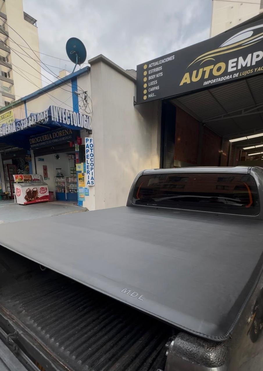 Carpa plana importada marca MDL para Toyota Hilux REVO, ideal para proteger la carga de lluvia, polvo y sol. Diseño elegante y ajuste preciso que brinda seguridad y mejora la estética de tu camioneta.