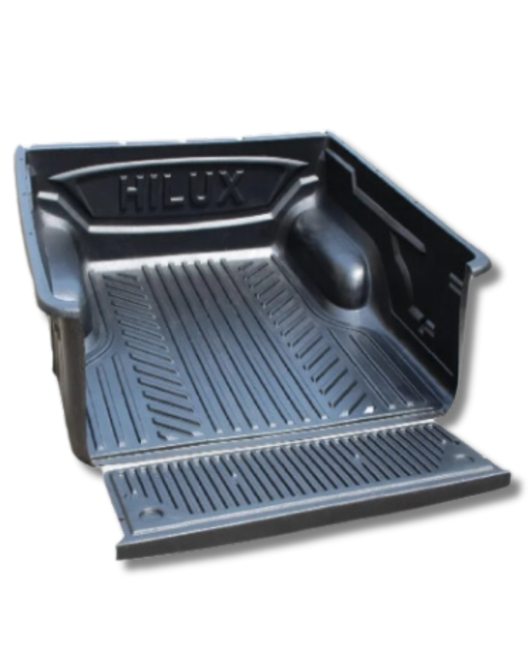 Duraliner para Toyota Hilux Revo (Contramarcado palaba HILUX) . Protector de platón resistente que evita rayones, golpes y desgaste por carga, brindando mayor durabilidad y protección a tu camioneta.