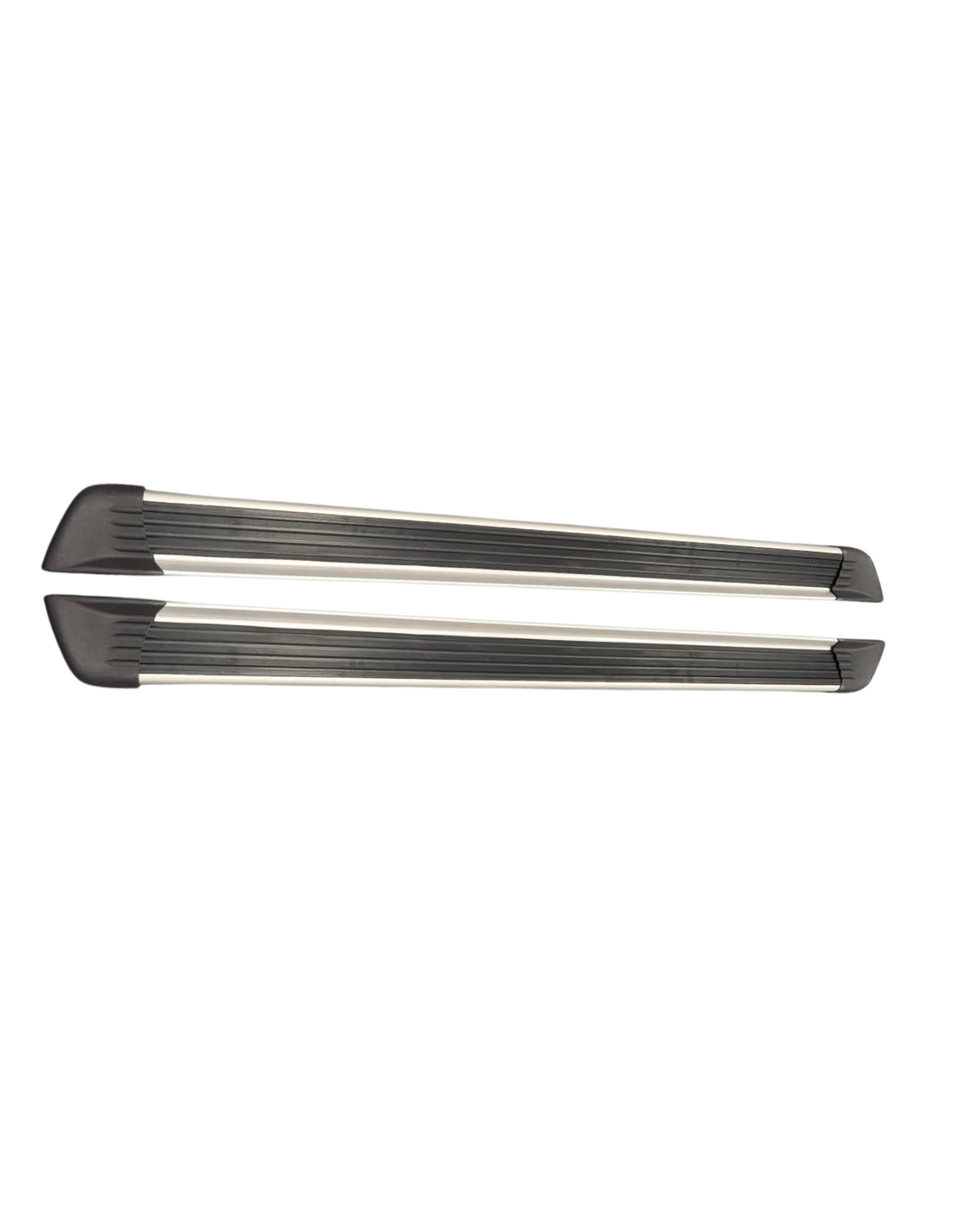 Estribos universales encauchetados. Diseño antideslizante y resistente que mejora la seguridad al subir y bajar del vehículo, ofreciendo mayor agarre y adaptabilidad para diferentes camionetas.