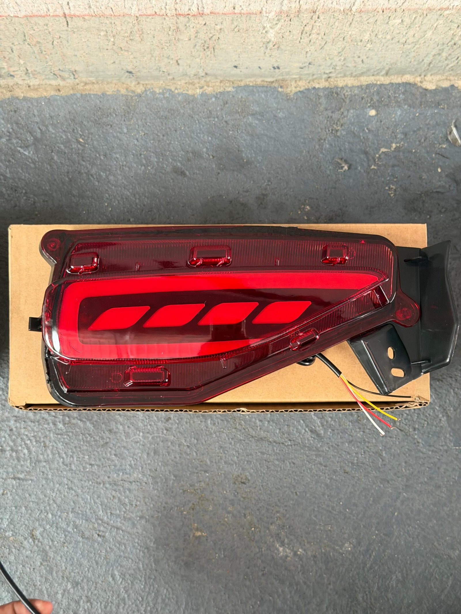 DRL rojo 3 funciones (luz media, direccional y freno) para Toyota Fortuner modelos 2017–2025.