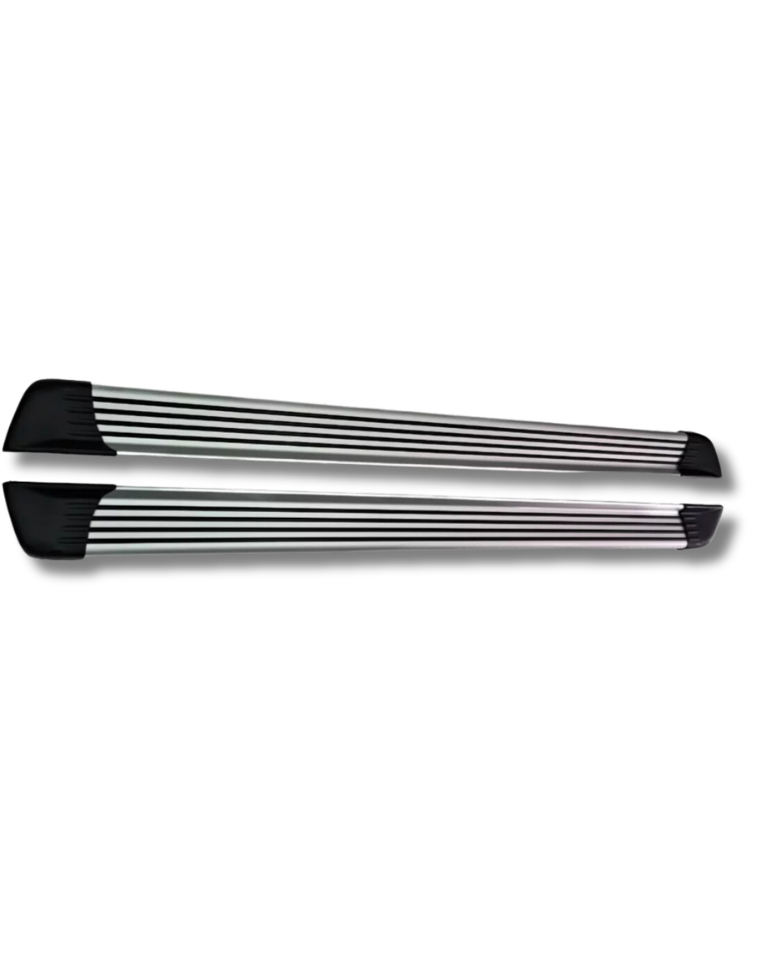Juego de estribos universales importados diseño 4 líneas negras. Fabricados en material resistente, brindan mayor seguridad y comodidad al subir y bajar del vehículo, con estilo deportivo adaptable a diferentes camionetas.