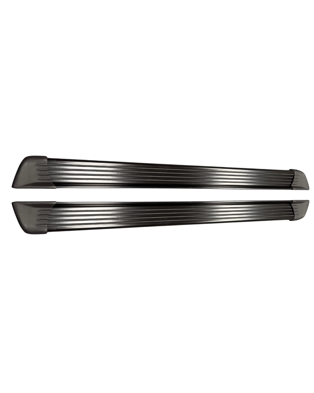 Estribos universales diseño 4 líneas color negro. Fabricados en material resistente, brindan mayor seguridad y comodidad al subir y bajar del vehículo, con acabado deportivo que se adapta a diferentes camionetas.