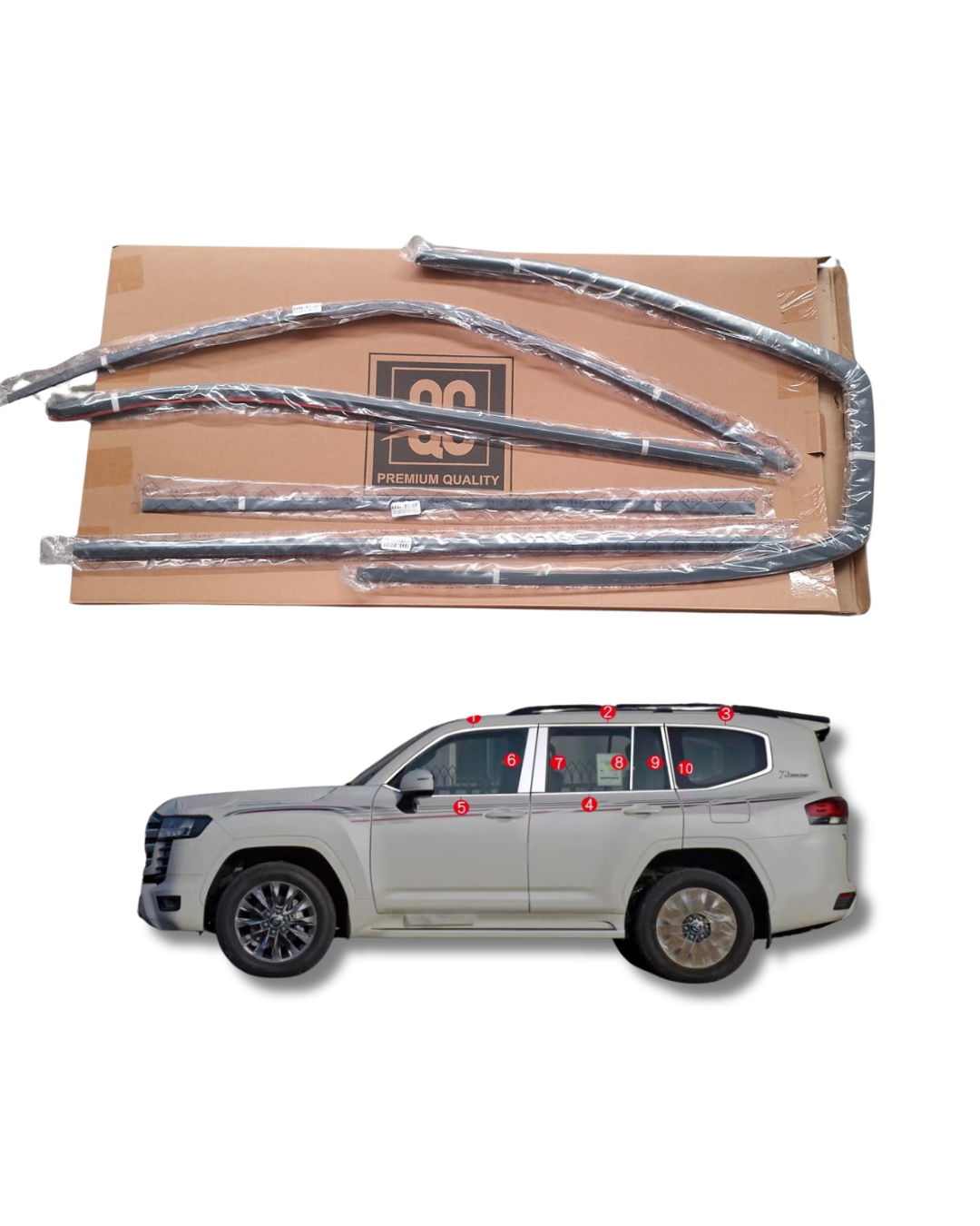 Dale un toque premium y elegante a tu Toyota LC300 con el Juego Lamevidrios Cromados.
