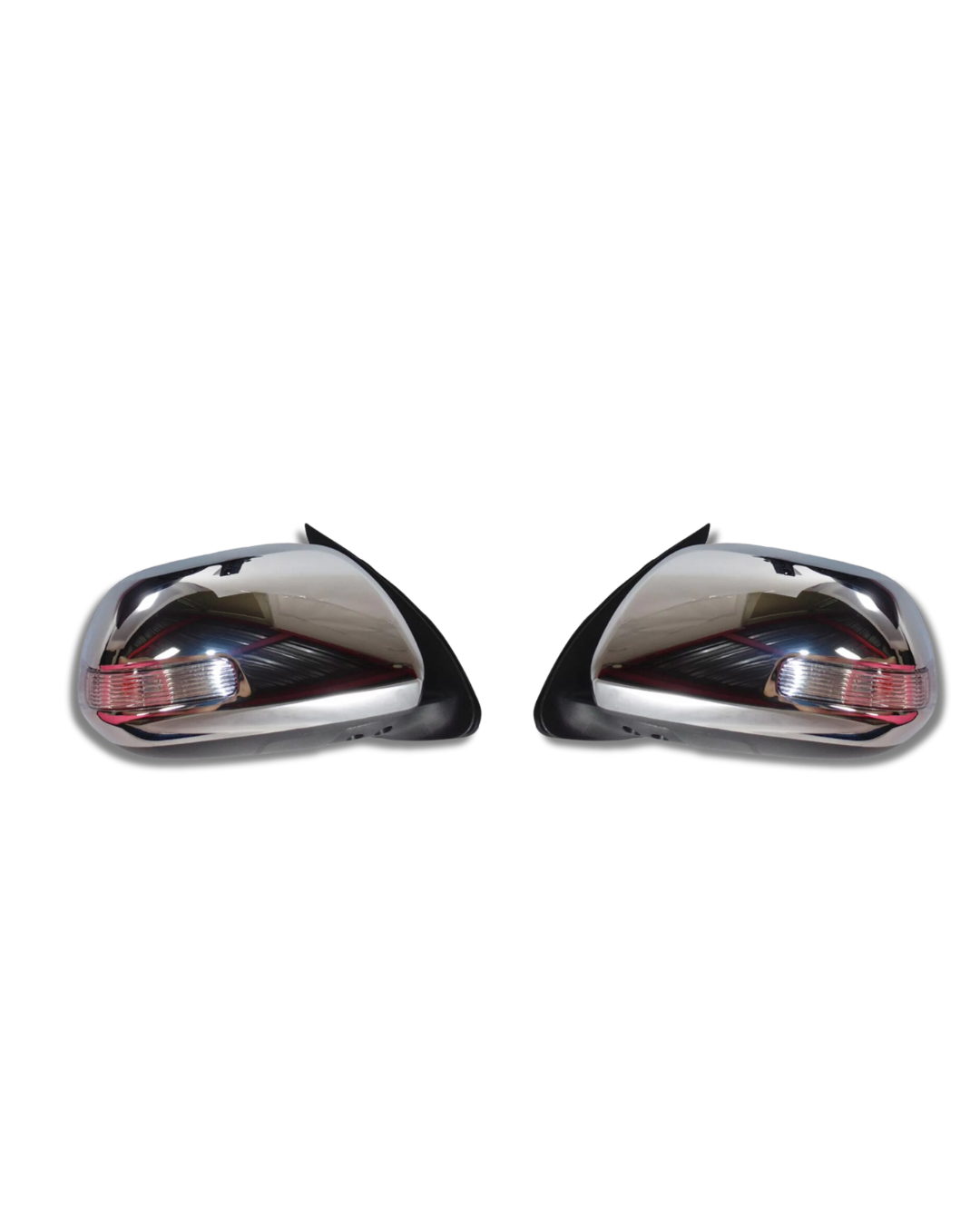 Juego de espejos LED para Toyota Hilux Vigo. Incorporan luz direccional LED integrada que mejora la visibilidad y aporta un estilo más moderno y actualizado a tu camioneta.