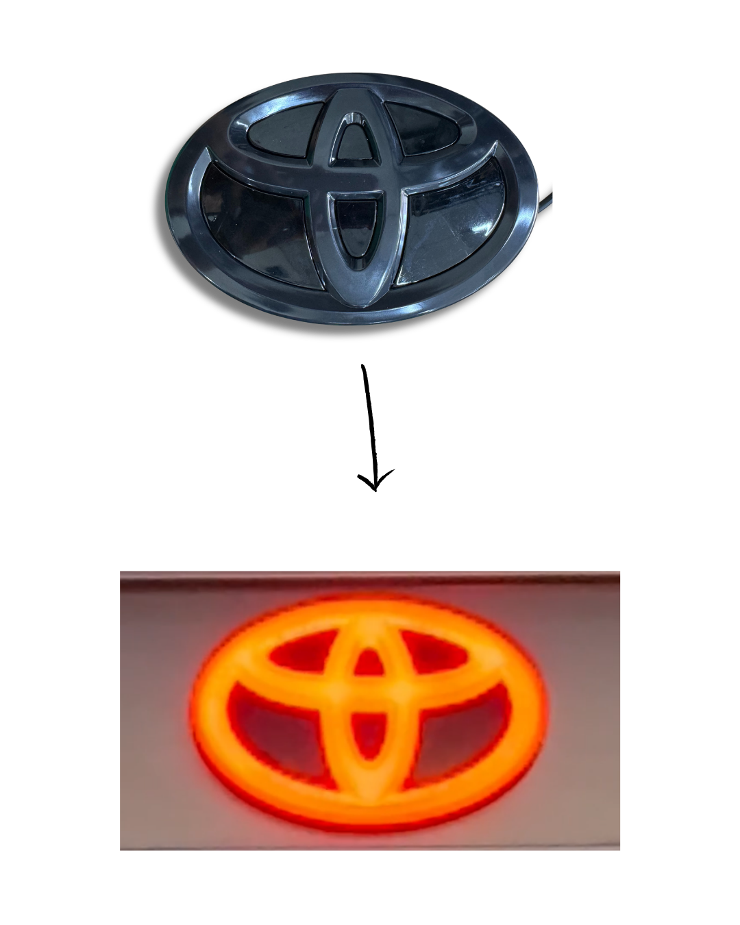 Dale un upgrade moderno y tecnológic a Toyota con el Logo trasero LED 2 funciones (luz media blanca, freno rojo)