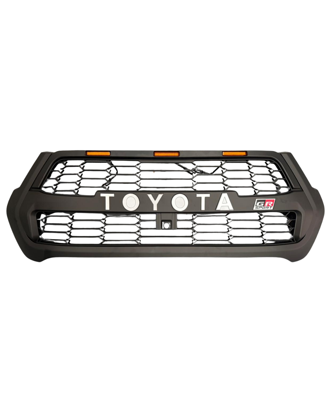 La Persiana Hilux Revo (2021-2025) GR Negro Mate le da un estilo más agresivo y deportivo al frente de tu Toyota Hilux. Su acabado negro mate tipo GR resalta la presencia de la camioneta con una apariencia más robusta y moderna.