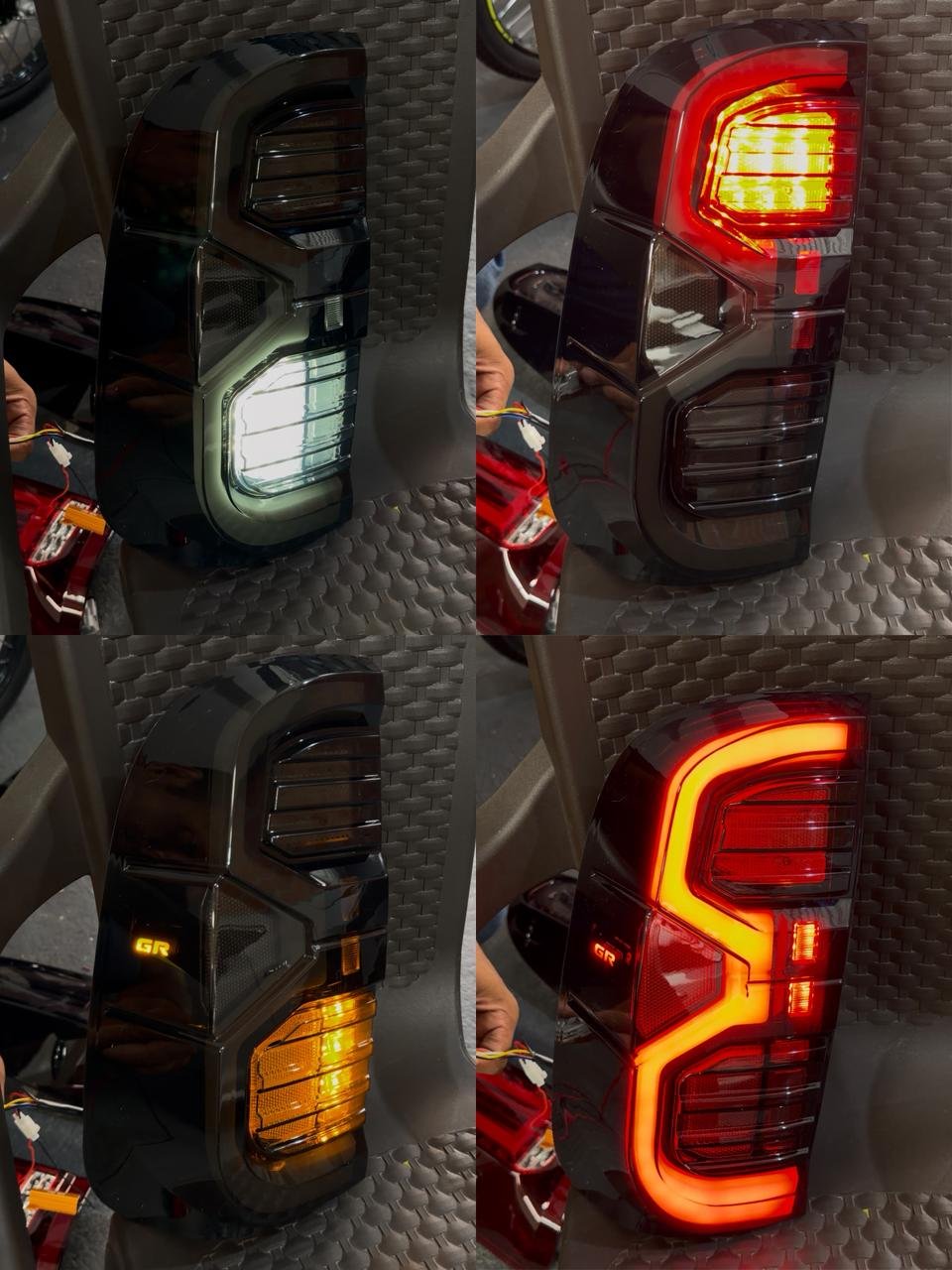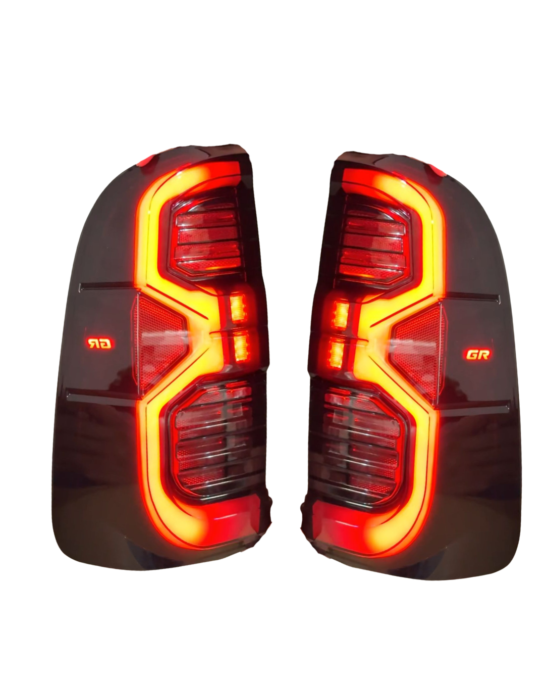 Juego de Stop GR LED tipo Revo ahumado para Toyota Hilux Vigo modelos 2006–2015. Diseño deportivo estilo GR con acabado oscuro, iluminación potente y encendido instantáneo que mejora la estética y visibilidad de tu camioneta.