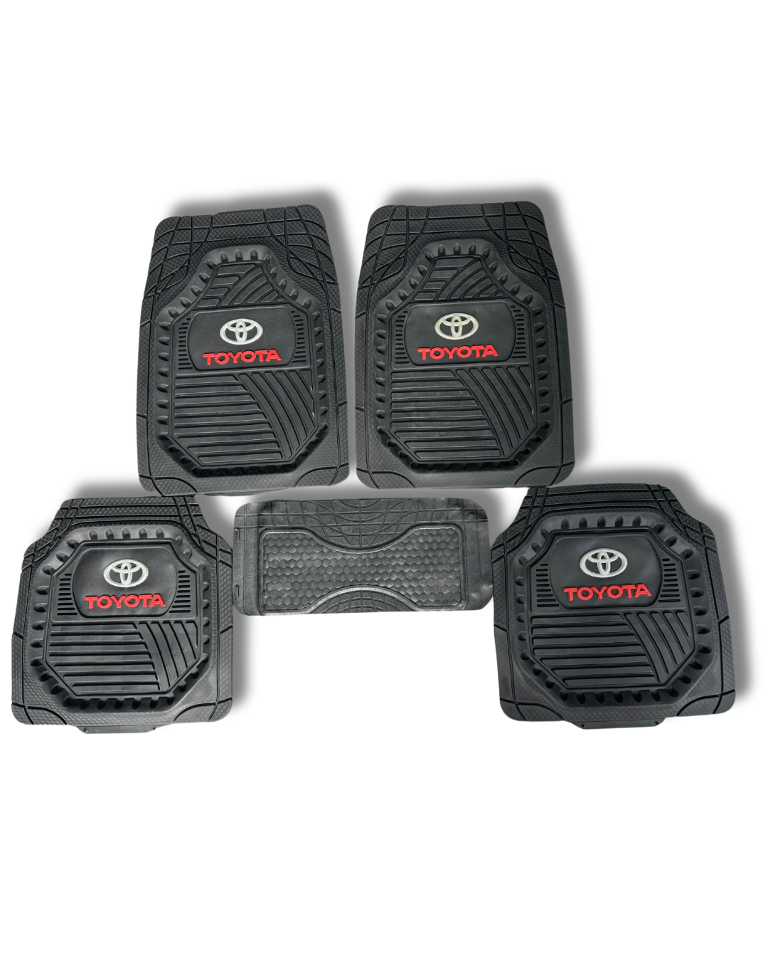 Tapetes de goma universal para TOYOTA, ideales para proteger el interior contra agua, barro y suciedad. Se recortan a la medida para un mejor ajuste y el tapete del piloto viene contramarcado con la marca del vehículo, brindando un acabado más personalizado.