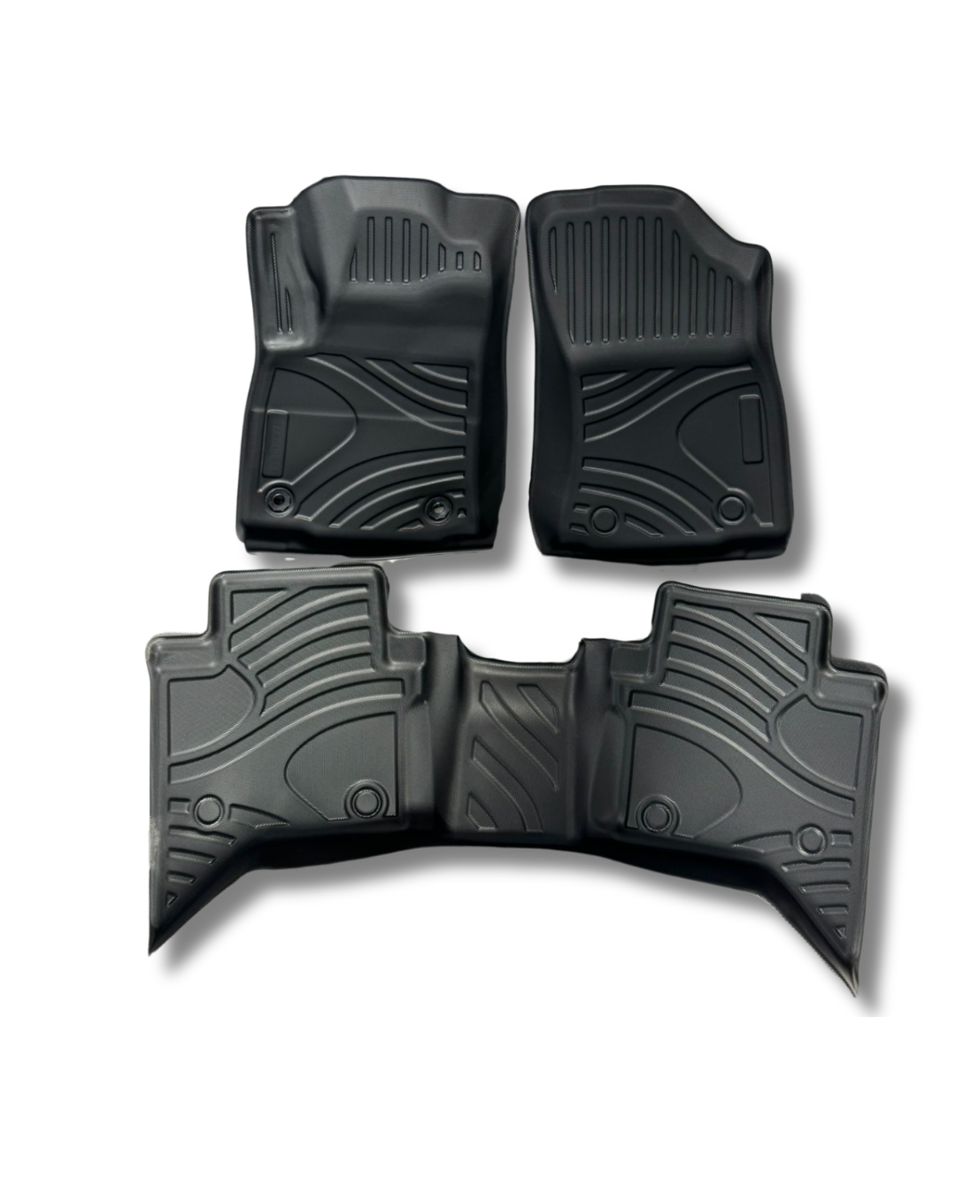 Tapetes termoformados para HILUX REVO 2020, diseñados para brindar protección total al interior de tu vehículo. Ajuste preciso tipo bandeja que protege contra agua, barro y suciedad, manteniendo el piso limpio y en perfecto estado.